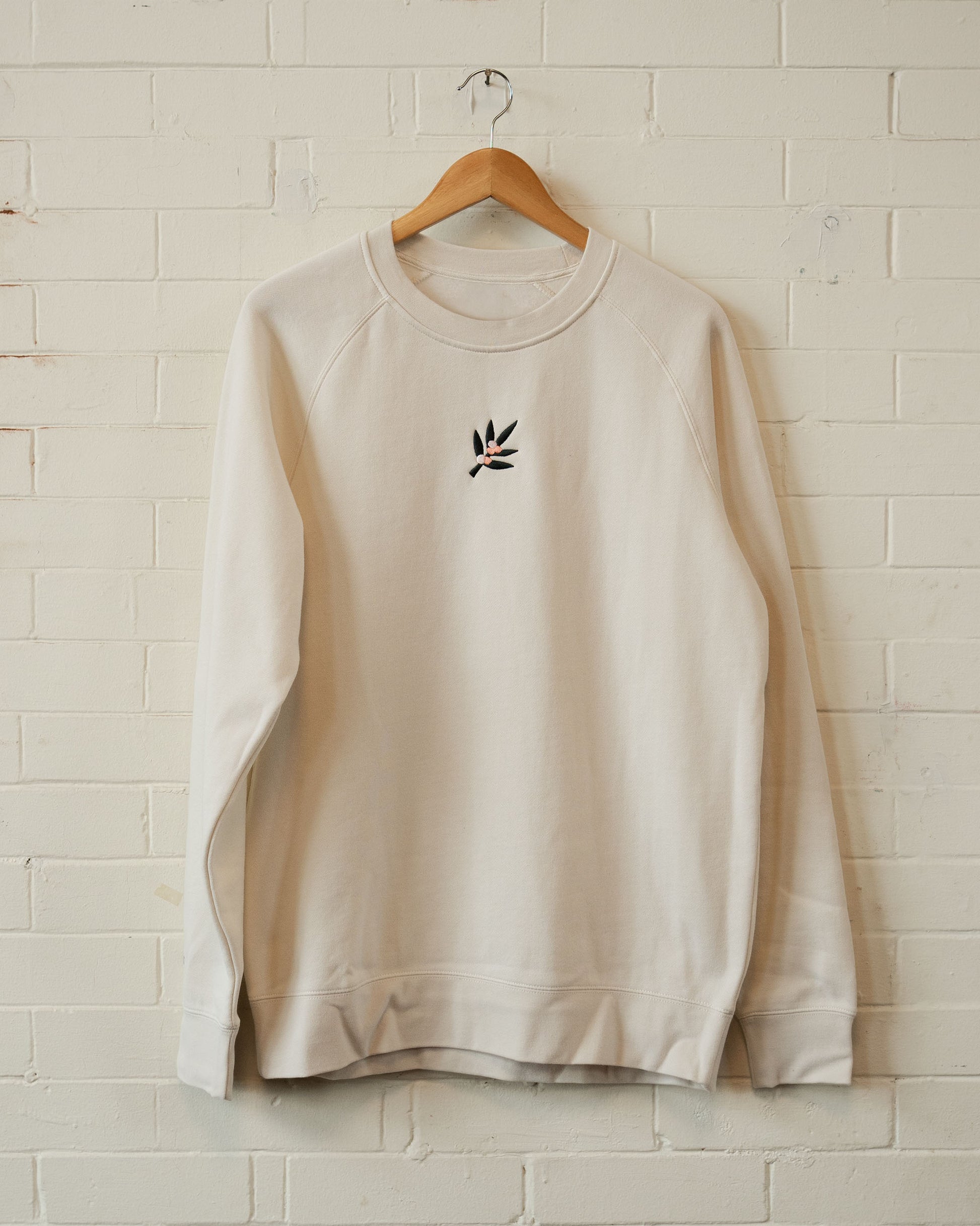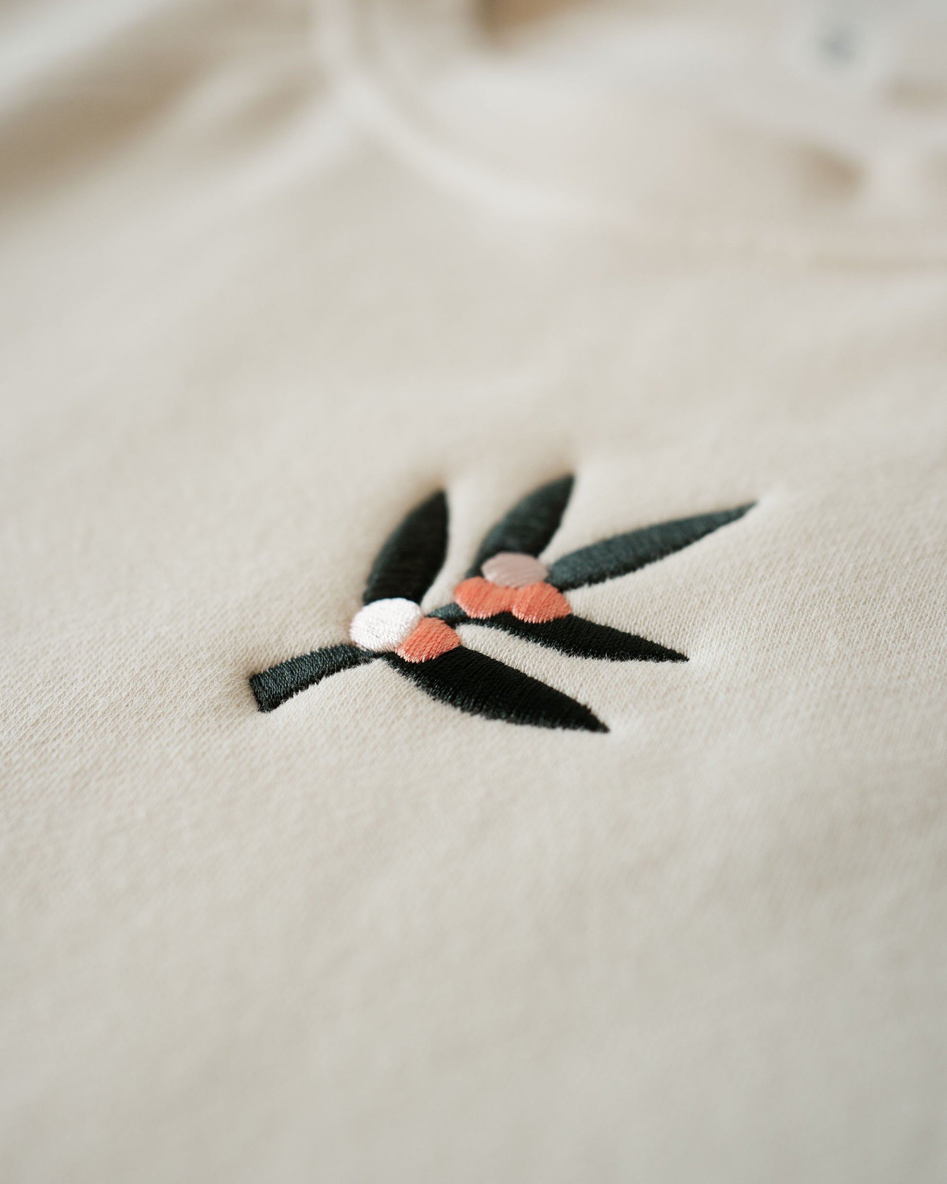 Ooohh, this one's delightful! 100% cotton and just oversized enough, this features a small touch of embroidery: a coffee leaf and berries. Sleeve logo detail in Depot Green. Pink or cream.